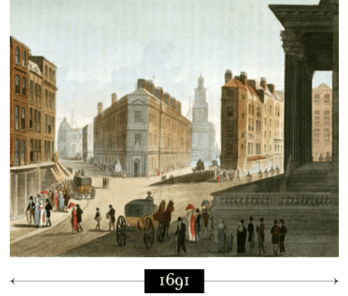 As Lloyd's evolved into a more formal society, the 'Subscribers to Lloyd's' occupied new premises at the Royal Exchange in Cornhill.
