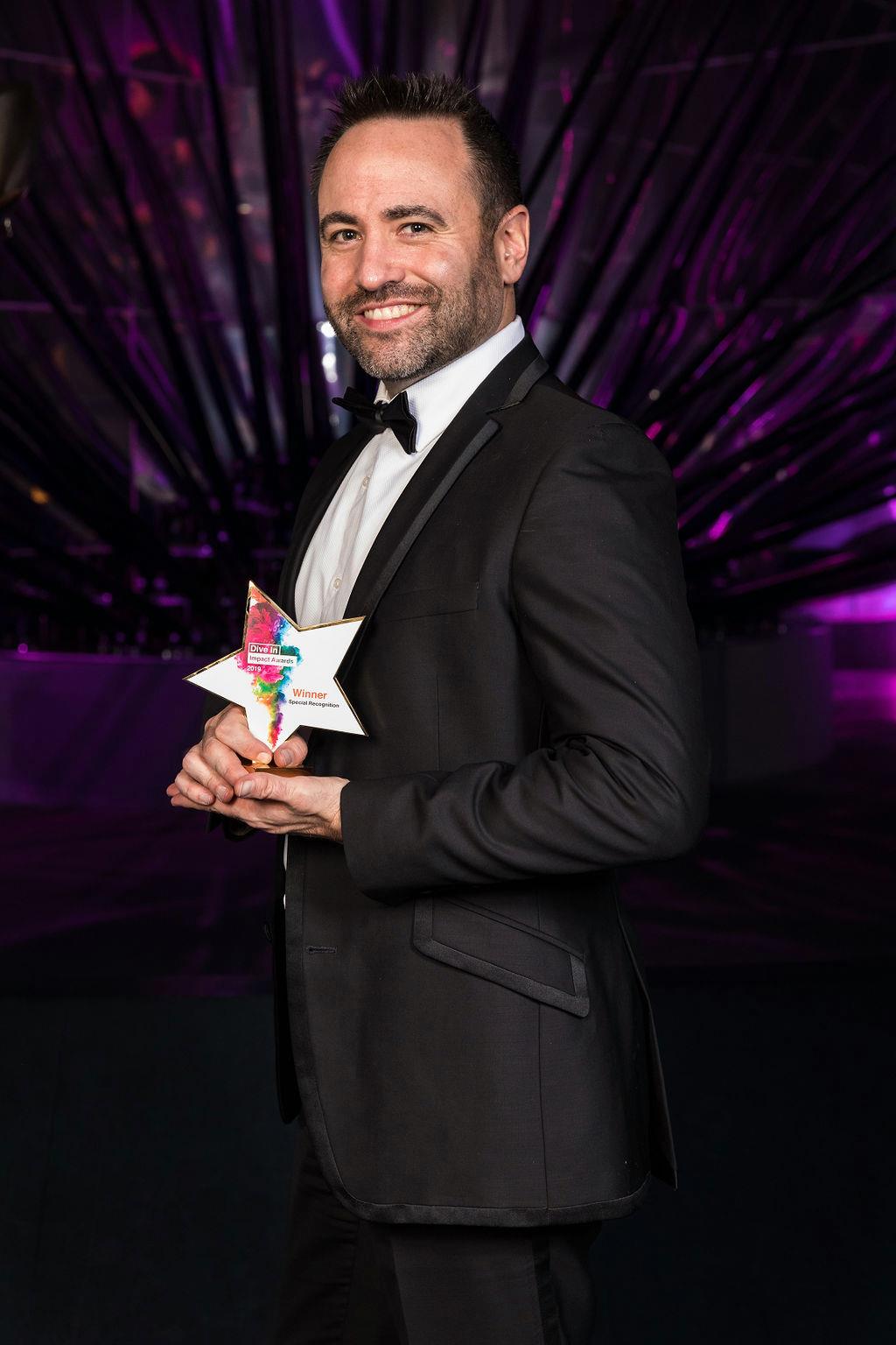 Erik receiving his Special Recognition Award at Dive In 2019